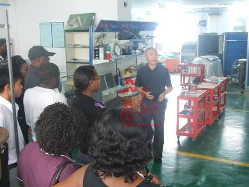 最后,十三國代表團參觀龍神引進的國際先進設備和龍神的鈑噴培訓中心,對中國企業的發展贊嘆不已
