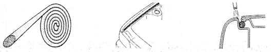 同前面的繩子作用一樣,是一種輔助遮蔽材料,主要用在有密封條的部位的遮蔽。有經驗的師傅知道,在遮蔽密封條或嵌條部位時:遮蔽過多,部分邊緣會無法噴到涂料;遮蔽過少,則會連密封條或嵌條上也噴上了涂料。在這種情況下,可以在密封條下面嵌入一種特別的產品,將密封條或嵌條與車身之間撐起一道縫隙,這樣在涂裝時,涂料就能涂勻縫隙邊緣,拆下遮蔽材料后,縫隙邊緣的涂膜就會均勻飽滿。下圖所示即為此類產品的一例:
