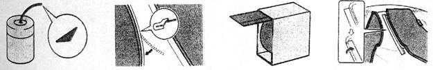 縫隙膠帶是一種遮蓋材料,用于在發動機罩或車門處,防止涂料透入縫隙。縫隙膠帶為聚氨酯泡沫體,并加入粘合劑而制成,因此它簡化了有縫隙區域的遮蓋。它呈圓柱形,因此可以防止噴涂臺階,使涂裝的表面很容易打磨(如圖4-1-2